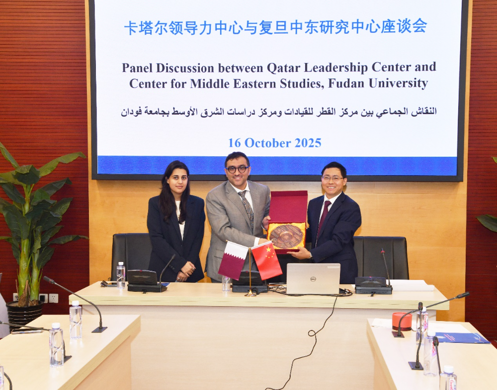 2025年10月16日,卡塔尔领导力中心(Qatar Leadership Center)代表团一行32人到访复旦大学国际问题研究院中东研究中心,双方就中国与阿拉伯国家战略伙伴关系、中国与海合会自由贸易区建设以及中国与卡塔尔教育、文化、科技及人才培养等领域的合作进行了深入交流。