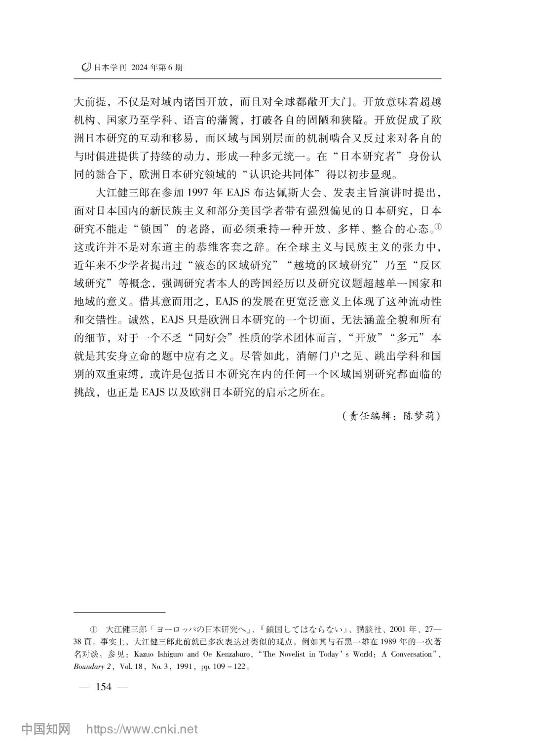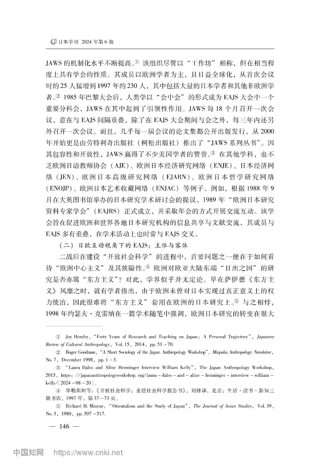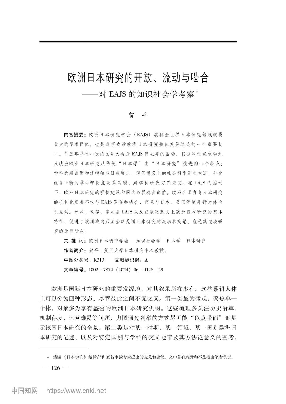 贺平:《欧洲日本研究的开放、流动与啮合——对EAJS的知识社会学考察》