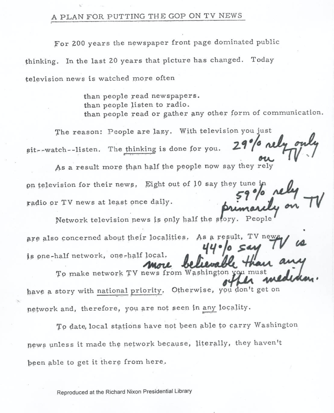 图:《让共和党入驻电视新闻的计划》文件的首页。