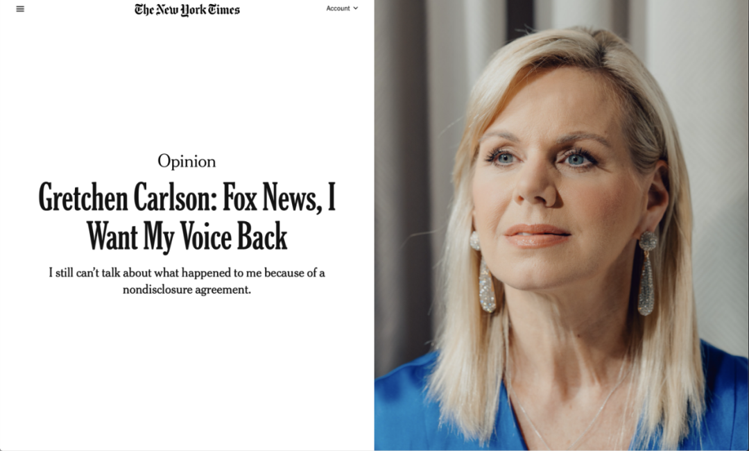 6.Michael M. Grynbaum and John Koblin, “Gretchen Carlson of Fox News Files Harassment Suit Against Roger Ailes,” The New York Times, July 6, 2016,https://www.nytimes.com/2016/07/07/business/media/gretchen-carlson-fox-news-roger-ailes-sexual-harassment-lawsuit.html.