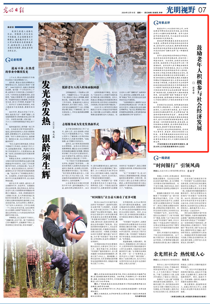 老年是人的生命的重要阶段,是仍然可以有作为、有进步、有快乐的重要人生阶段。没有年龄歧视的社会经济参与是老年人口维持良好健康状况的途径,也是我国实施积极应对人口老龄化战略的重要支撑。