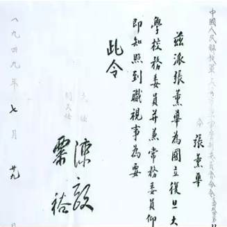在这里,复旦大学经济系的老系主任张薰华教授做出了杰出的贡献。张薰华教授1921年出生于江西九江,今年已经97岁高龄了。我进入复旦大学经济系读书时,张教授是系主任。张教授是地下党,在上海解放时参加了解放军接管复旦大学的工作。复旦大学校史馆还保留着1949年7月29日由陈毅和粟裕签署的授予张薰华等同志复旦大学“校务委员并兼常务委员”的“委任状”。