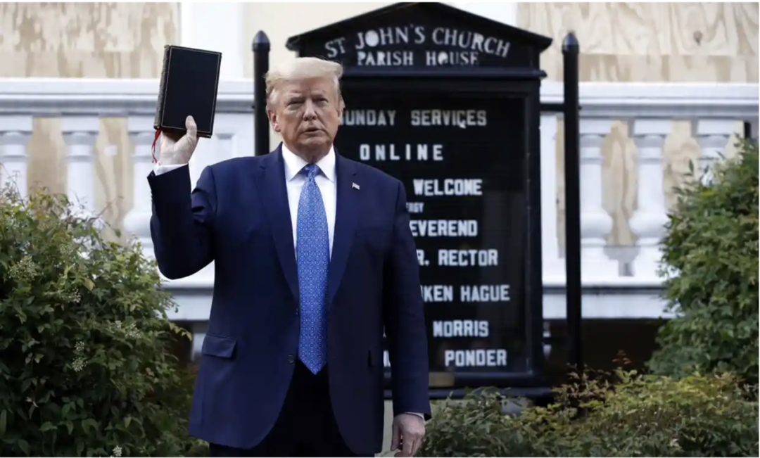 除了采取措施避免抗议活动暴力化之外,特朗普也很注重对选民基本盘进行回应。6月1日,在抗争运动高涨之际,特朗普带着女儿伊万卡(Ivanka)等人从白宫穿过拉斐特广场,在圣约翰教堂门口手持圣经拍摄照片。此举被认为是重要的政治宣示。《卫报》评论认为,特朗普此举目的在于向宗教保守派选民宣示,表明自己将会捍卫宗教保守派选民的诉求。
