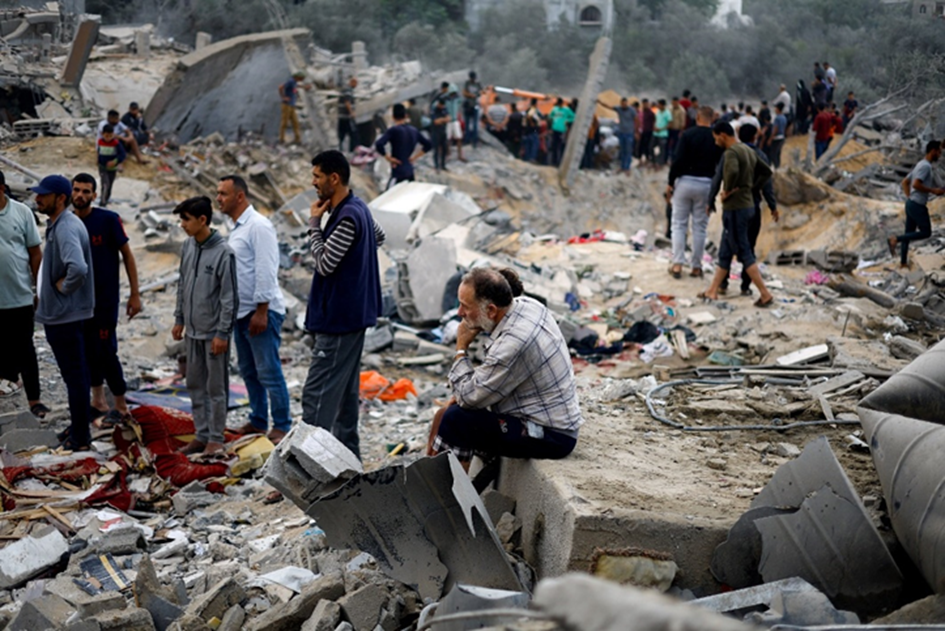 加沙地带南部汗尤尼斯的以色列空袭现场,图片来源:路透社