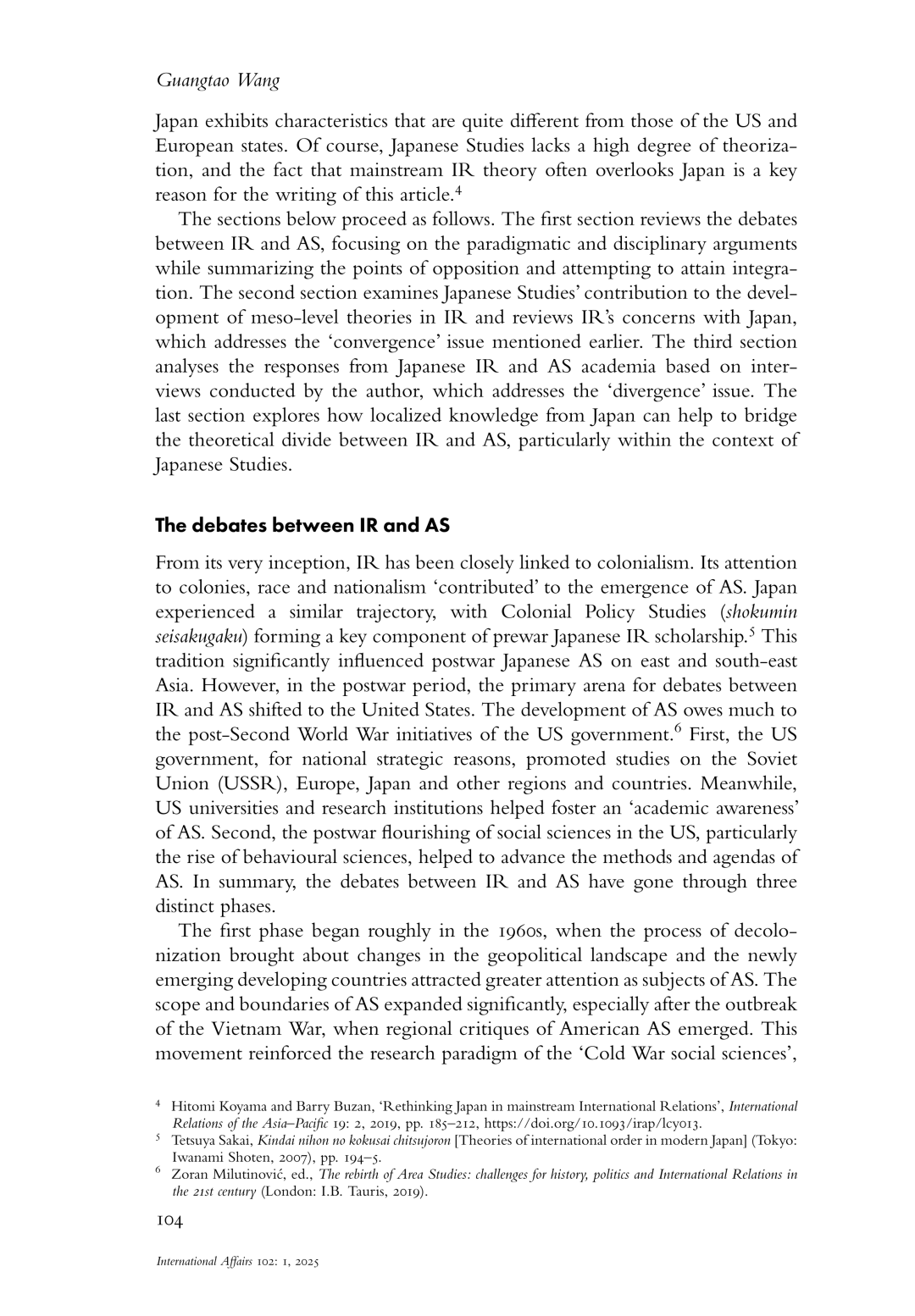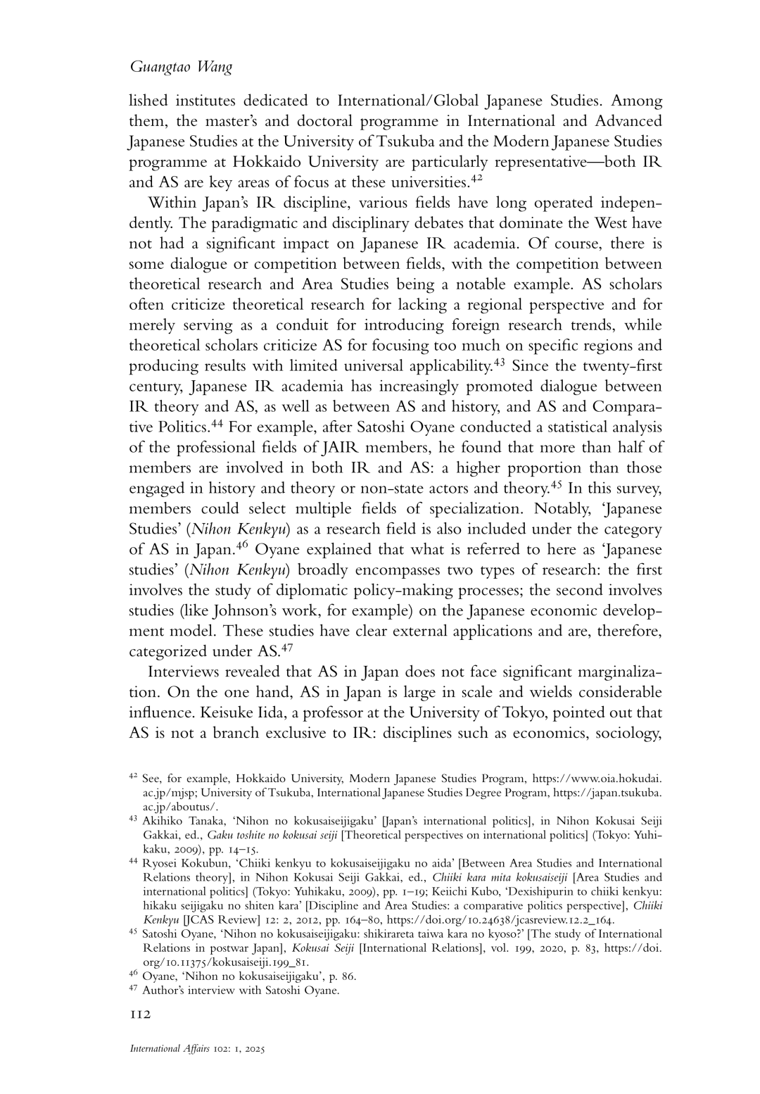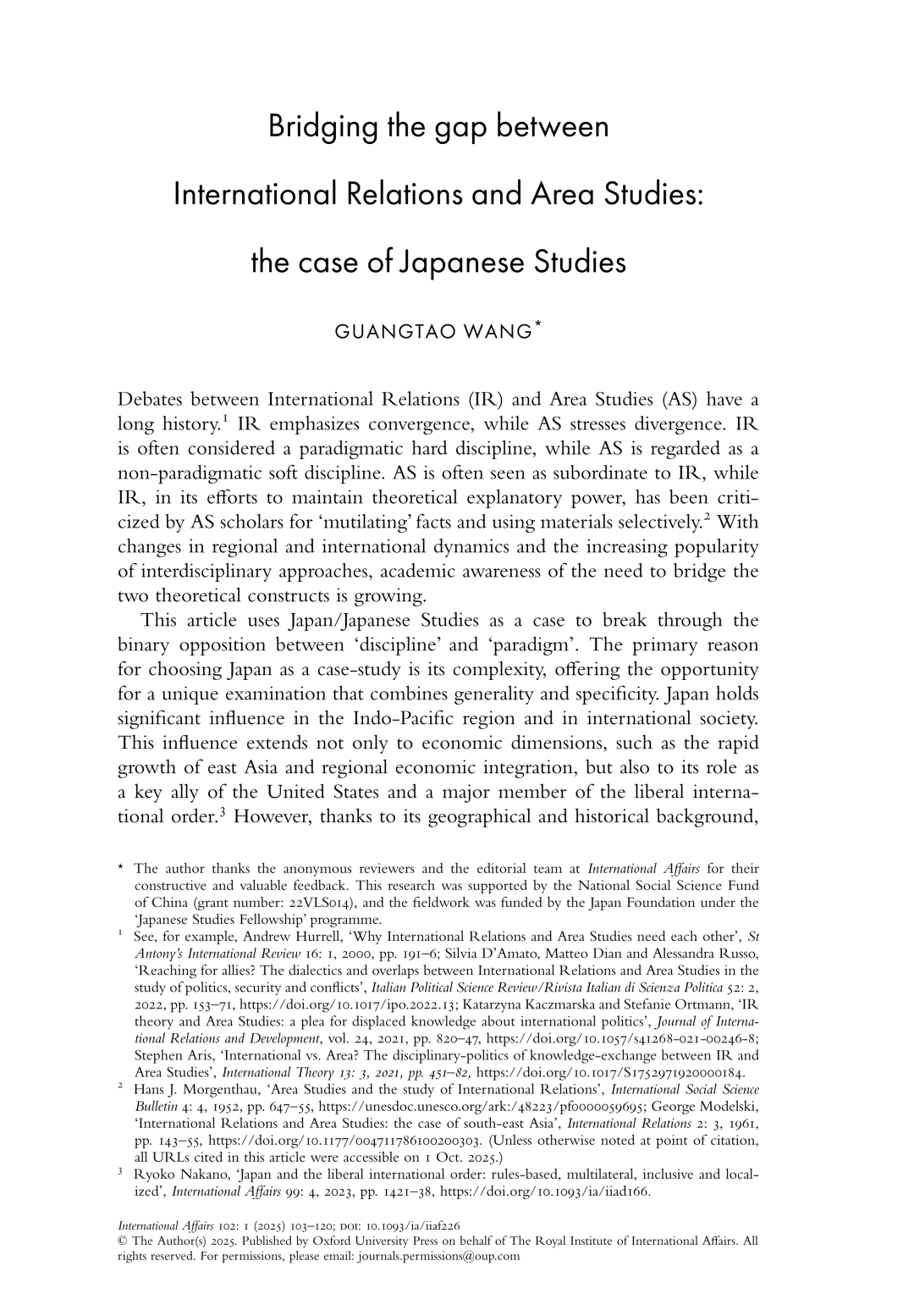 Guangtao Wang(2026), Bridging the gap between International Relations and Area Studies: the case of Japanese Studies, International Affairs, Vol.102, No.1, pp.103-120.