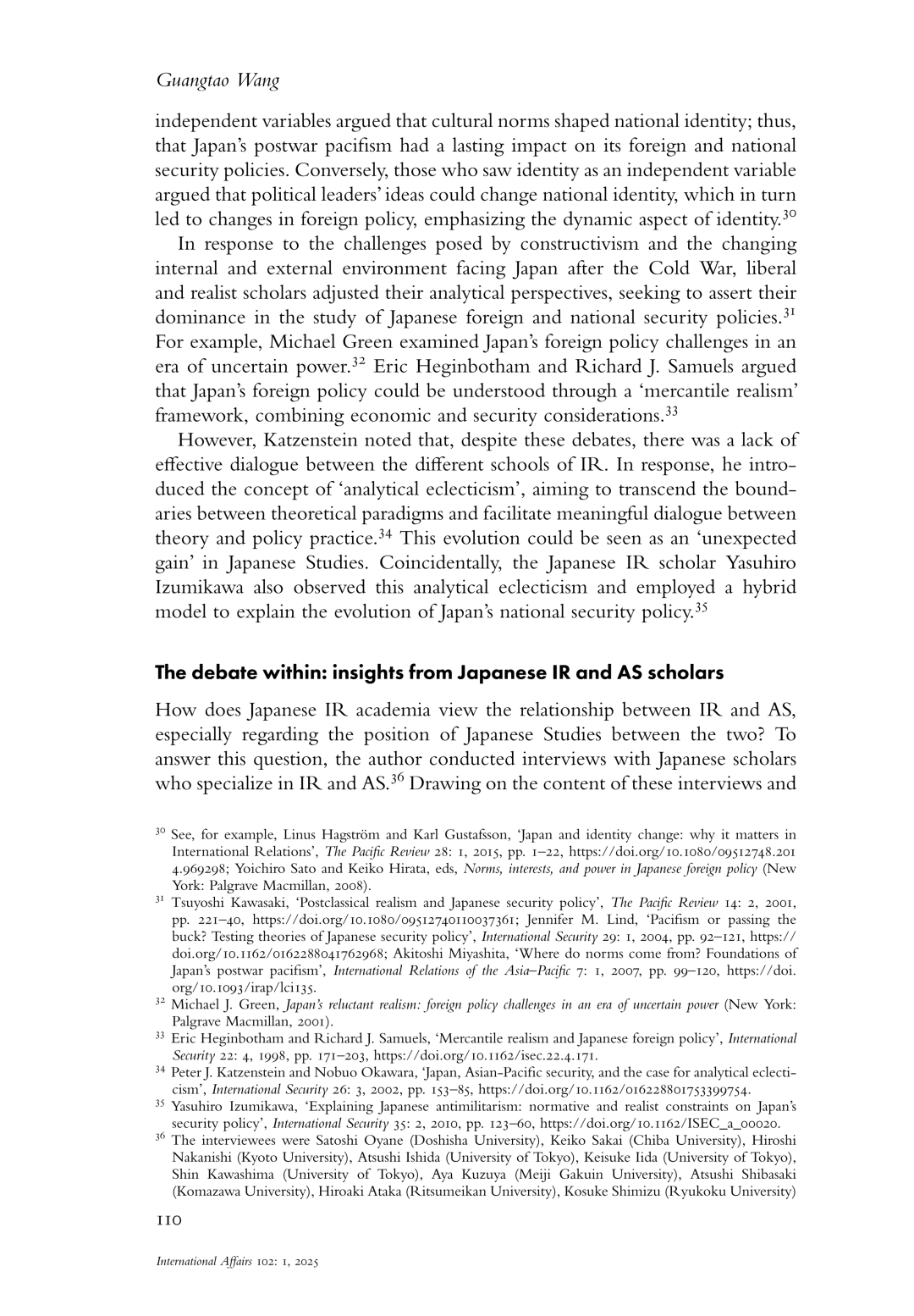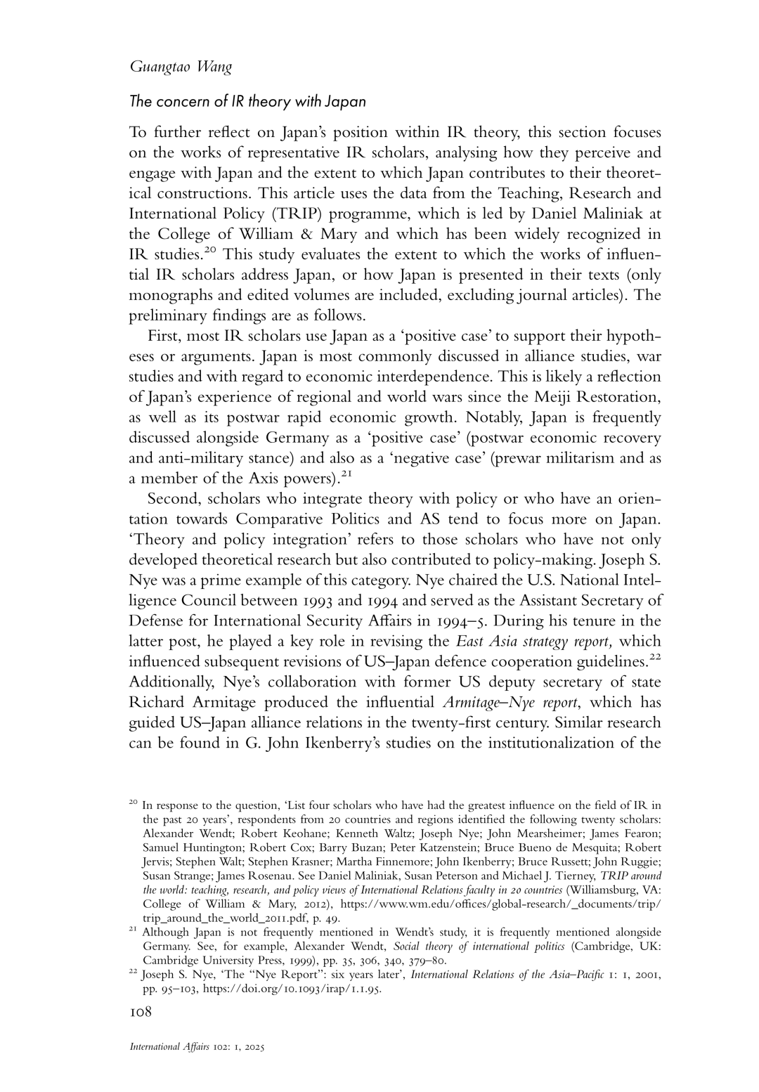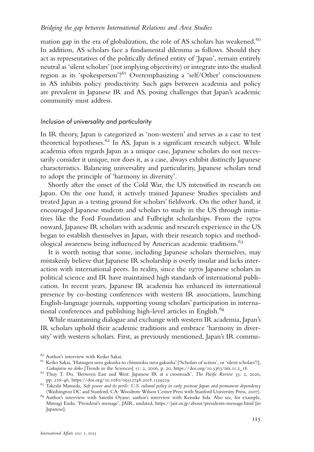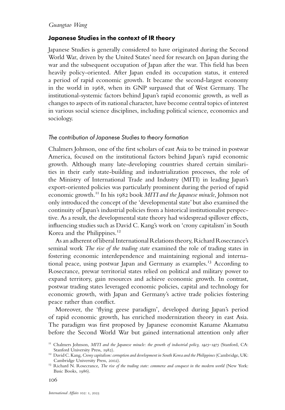 Guangtao Wang(2026), Bridging the gap between International Relations and Area Studies: the case of Japanese Studies, International Affairs, Vol.102, No.1, pp.103-120.
