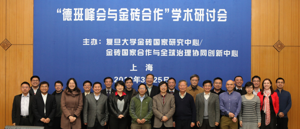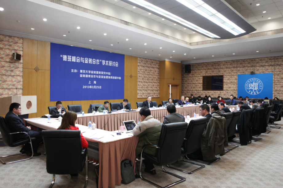 2013年3月25日上午,在复旦大学逸夫科技楼二楼,举办了“德班峰会与金砖国家合作”学术研讨会议程,该会议由复旦大学金砖国家研究中心、金砖国家合作与全球治理协同创新中心举办。参加会议的有金砖国家合作与全球治理协同创新中心的五所高校的专家。复旦国际关系与公共事务学院院长陈志敏教授出席并致词,中心主任樊勇明教授主持了会议。
