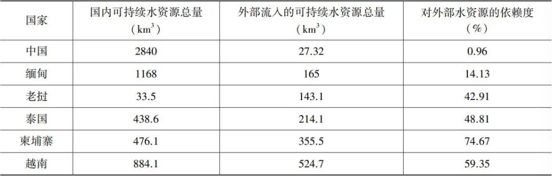 表2 澜湄六国对湄公河水资源占有和依赖情况