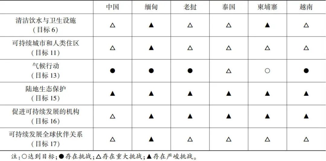 表3 澜湄国家实现2030年可持续发展目标完成情况