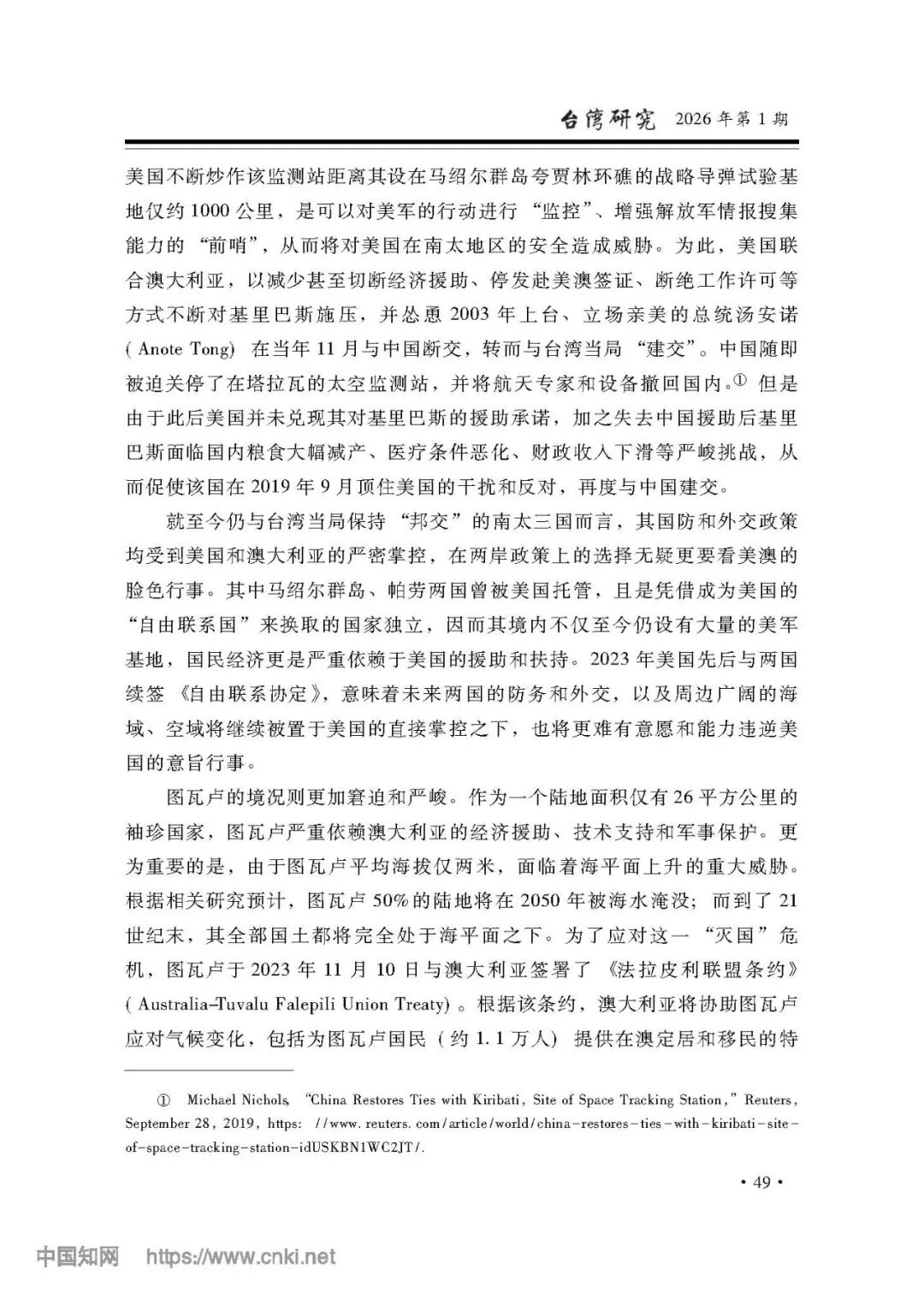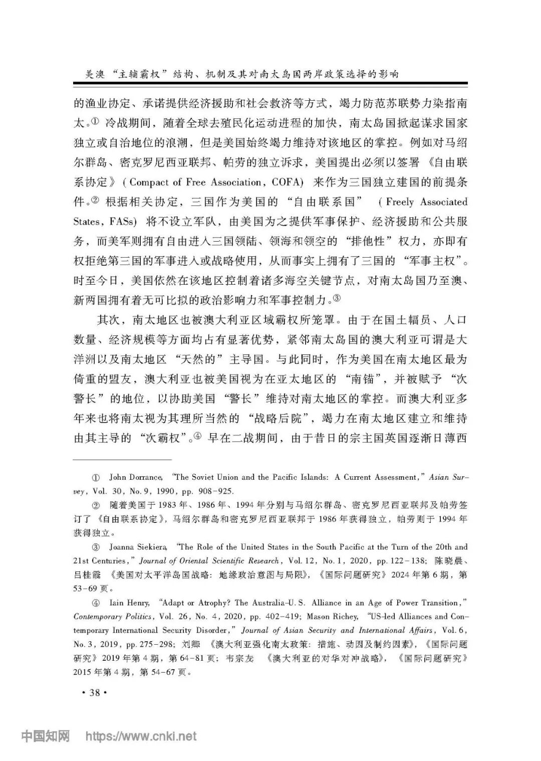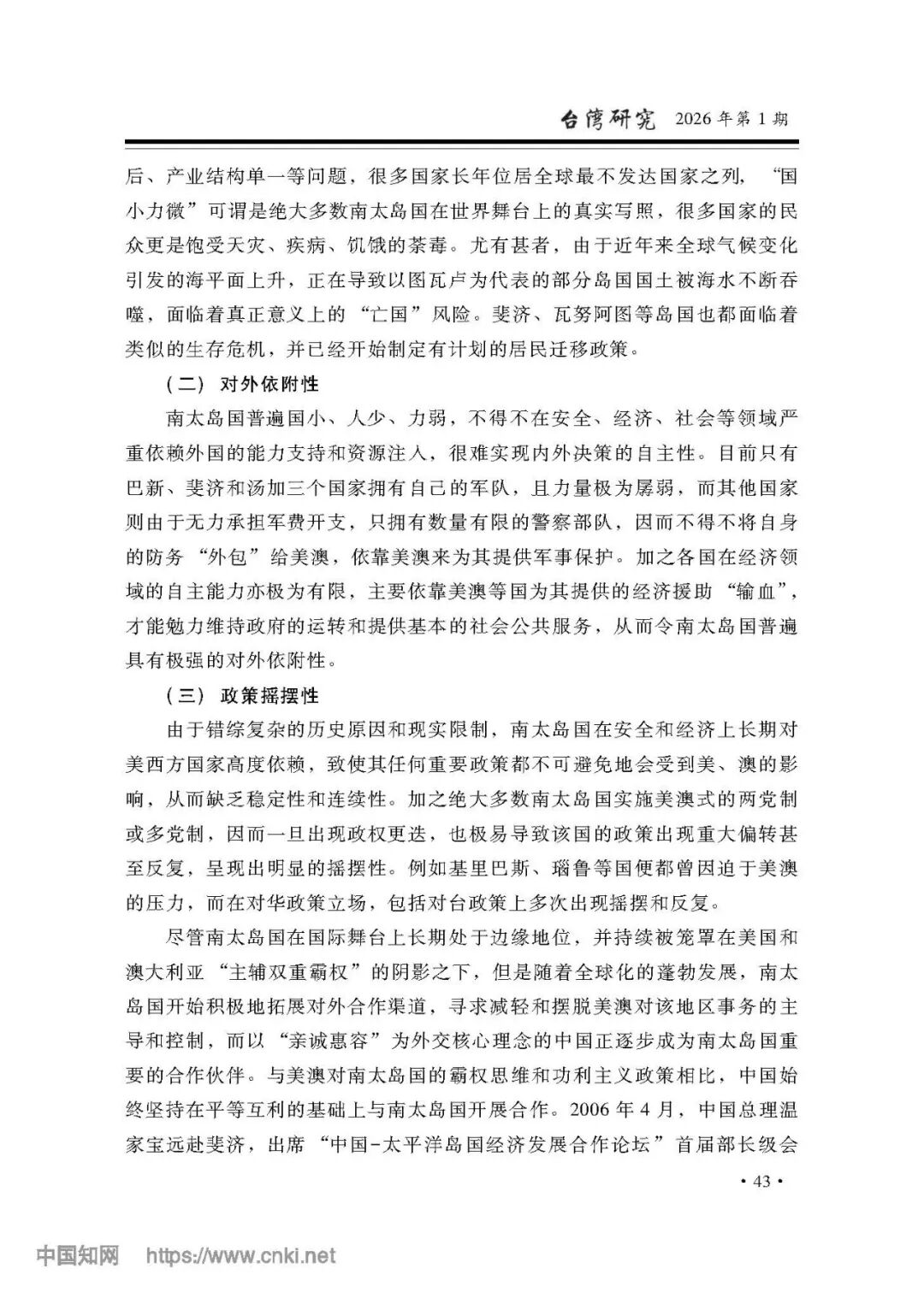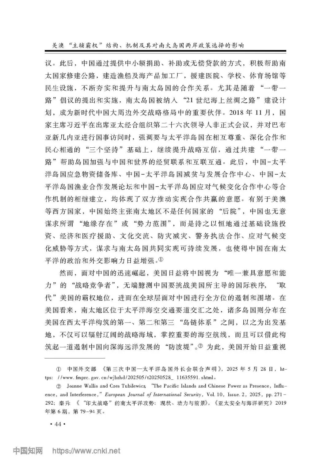 信强:《美澳“主辅霸权”结构、机制及其对南太岛国两岸政策选择的影响》,载《台湾研究》,2026年第1期,第36-54页。
