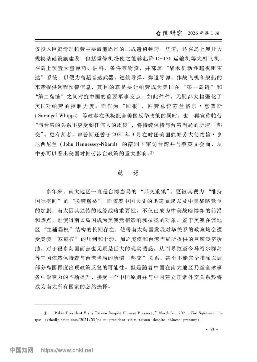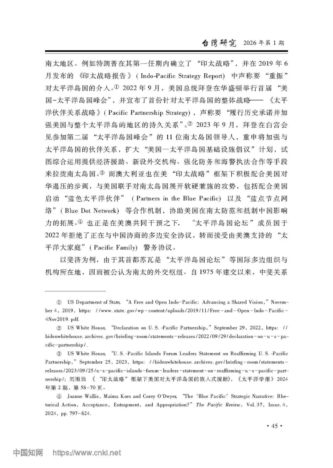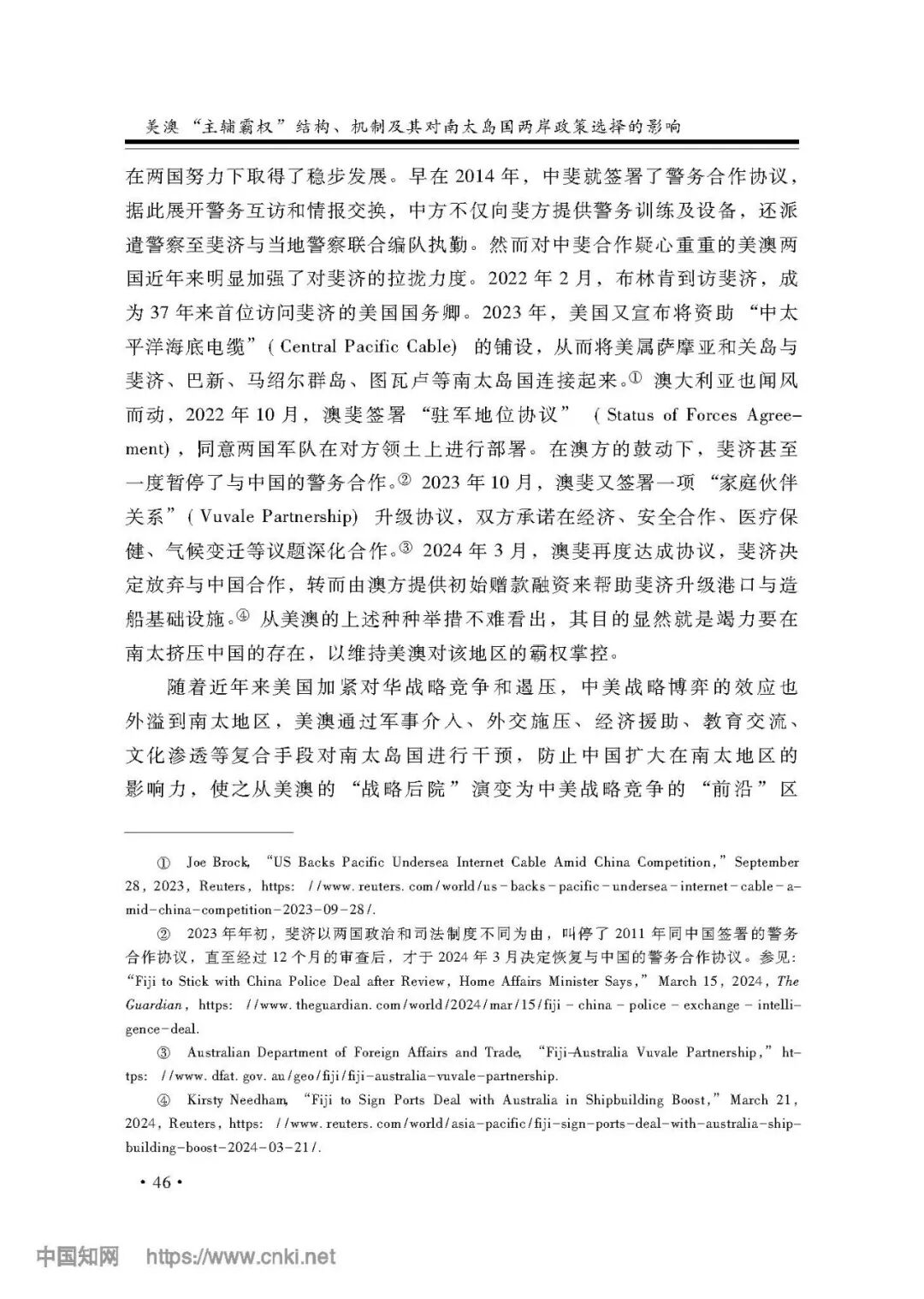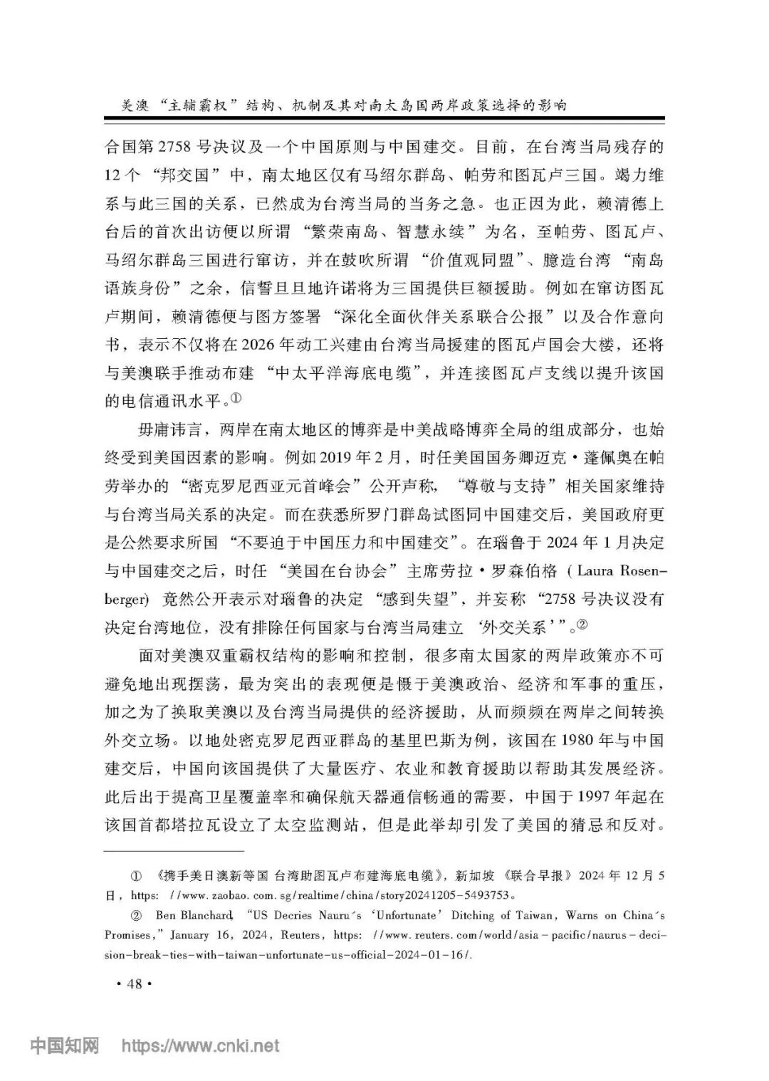 信强:《美澳“主辅霸权”结构、机制及其对南太岛国两岸政策选择的影响》,载《台湾研究》,2026年第1期,第36-54页。