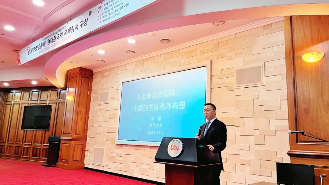 2024年10月2日,复旦大学国际关系与公共事务学院副院长、复旦大学中外人文交流研究中心主任张骥教授应韩国东西大学邀请,开展题为“人类命运共同体:中国的国际秩序构想”的特别讲座。该讲座是“2024年度东西大学韩中日亚洲校园(CAMPUS Asia)计划全球领导力特讲系列”之一,由东西大学亚洲校园学科、东亚研究院承办。东西大学中国研究中心所长、亚洲校园学科李弘揆教授主持讲座,亚洲校园项目的韩中日三国学生参加此次讲座。