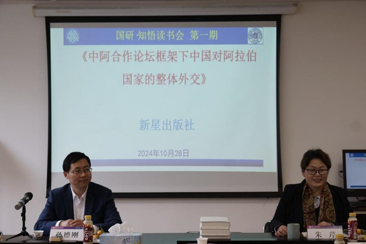 2024年10月28日下午,国研·知悟读书会第一期在国际问题研究院资料室(文科楼301室)成功举办。复旦大学国际问题研究院院长助理、中东研究中心主任孙德刚教授讲述所著《中阿合作论坛框架下中国对阿拉伯国家整体外交研究》(简称《整体外交》)的核心思想与著述心得。复旦大学国际问题研究院方秀玉教授担任点评嘉宾,院资料室筹建人朱芹老师主持第一期知悟读书会。