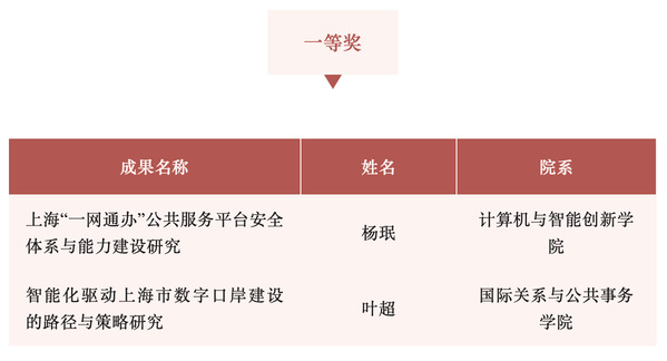 上海市决策咨询研究成果奖是经党中央、国务院批准设立,由上海市人民政府主办的省部级评比表彰项目,主要表彰贯彻落实党中央、国务院决策部署和国家战略任务,促进上海市经济、社会、城市发展所形成的前瞻性、原创性、科学性研究成果,是决策咨询领域具有重要影响的省部级奖项。