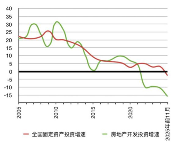 2005—2011年,固投增速均在20%以上,此后十余年固投增速呈现快速下滑的态势。仅看2025年,逐月累计的固投增速也呈现不断下降的趋势。