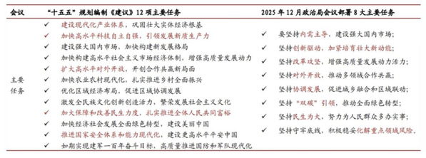 相比于“十五五”规划建议稿12项主要任务,内需重回首位、科技+产业次序仍靠前、双碳移至民生前列、防风险单列。