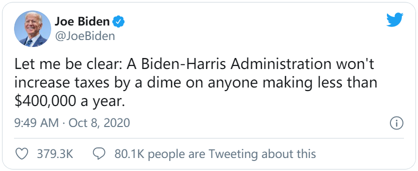9. Boston.com, “Mike Pence Incorrectly Claimed Joe Biden’s Plan Would Raise Taxes on ‘Every’ American. Here’s What It Would Actually Do.”. Retrieved from: https://www.boston.com/news/politics/2020/10/08/joe-biden-tax-plan