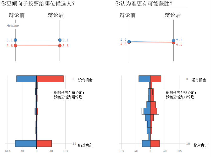 副总统辩论前后对选民倾向的调查。数据来源:FiveThirtyEight。
