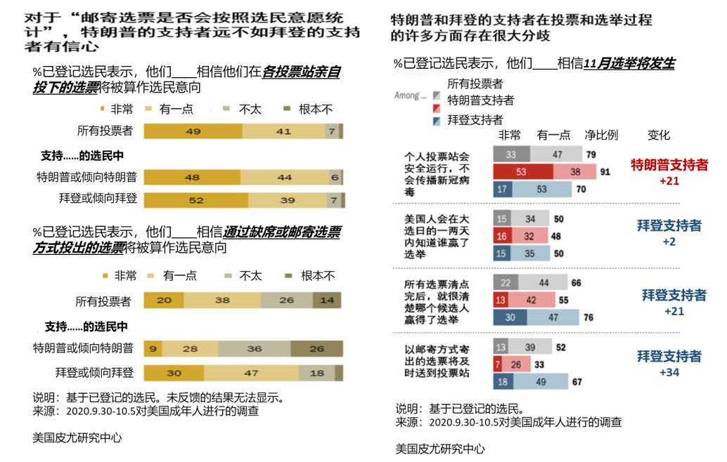 皮尤研究中心在10月14日发布的报告中指出,两党选民对选举过程的看法存在严重分歧。来源:Pew Research Center。