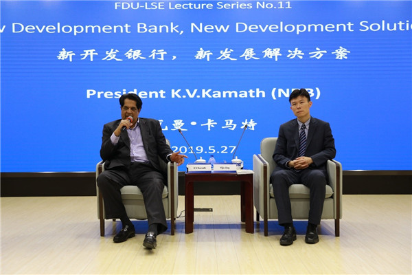 5月27日,复旦大学-伦敦政治经济学院系列讲座第11期在光华楼袁天凡报告厅举行,本次讲座由全球公共政策研究院和复旦发展研究院共同举办。新开发银行(New Development Bank)行长瓦曼•卡马特(K.V.Kamath)做了题为“新开发银行,新发展解决方案”的讲座。讲座由全球公共政策研究院院长敬乂嘉教授主持,伦敦政治经济学院全球南方研究中心高级研究员阿瓦罗•门德斯(Alvaro Mendez)和国际关系与公共事务学院郑宇教授参与评论。复旦大学国际关系与公共事务学院朱杰进副教授、赵剑治博士以及巴西盖图罗•瓦格斯基金会公共与商业管理学院Jose A. Puppim de Oliveira教授、美国普渡大学Bert Rockman教授也出席了本次讲座。讲座开始前,复旦大学常务副校长桂永浩教授、副校长陈志敏教授等与卡马特行长进行了礼节性会晤。
